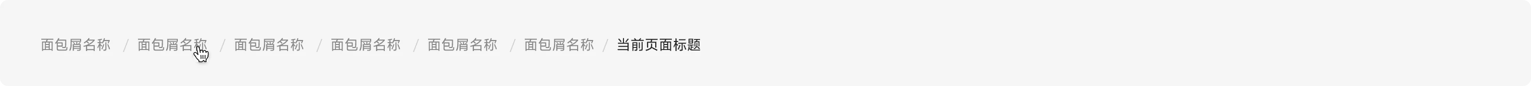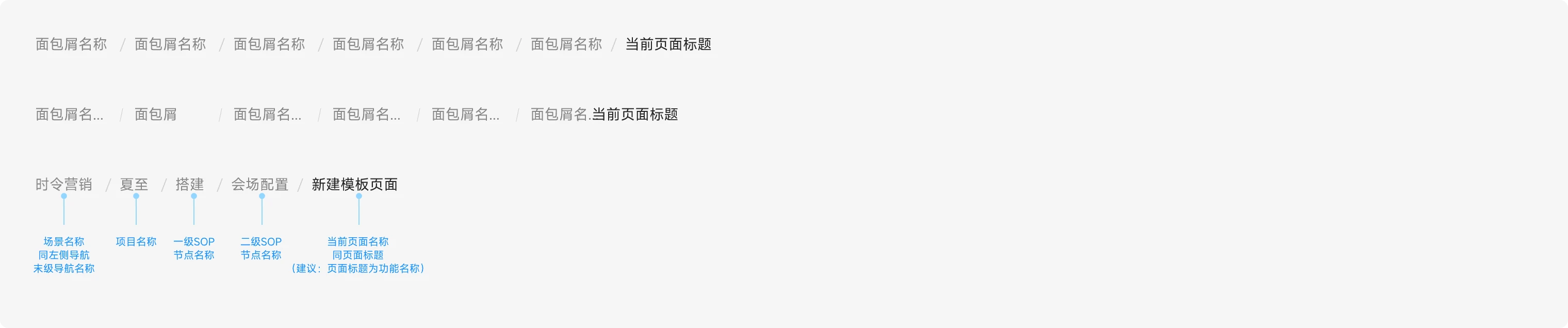 一般情况下面包屑的所有节点名称都需要展示完全,若遇到极限情况,必须保证当前节点(最后一个节点)的名称必须展示完全,其他上级节点按照等字数省略,如下: