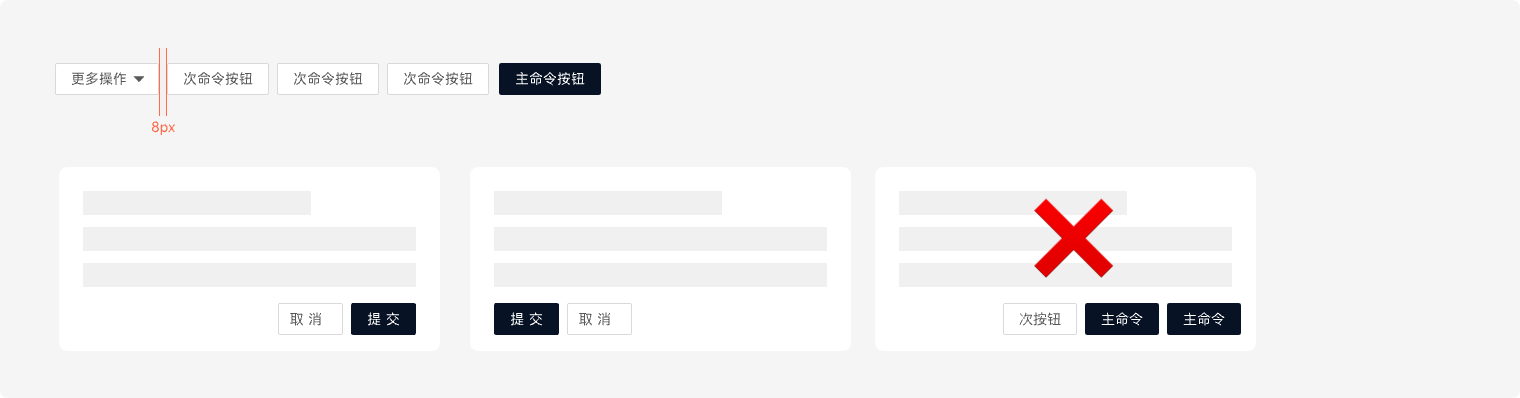 ● 数量:多个按钮成组时必须有且仅有一个主命令按钮,次命令按钮不建议超过3个