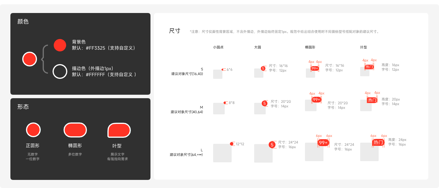 1)小圆点:用于提示有待处理的内容,但不强调具体数字,正圆形,默认尺寸6*6