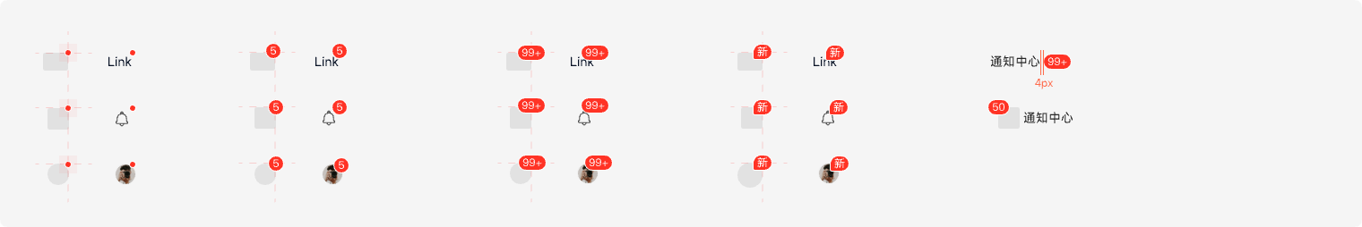 和文字,图标,头像等其他元素组合使用时,位置默认徽标位于组合对象的右上角,徽标中心点与组合对象右顶点对齐,支持徽标位置自定义。