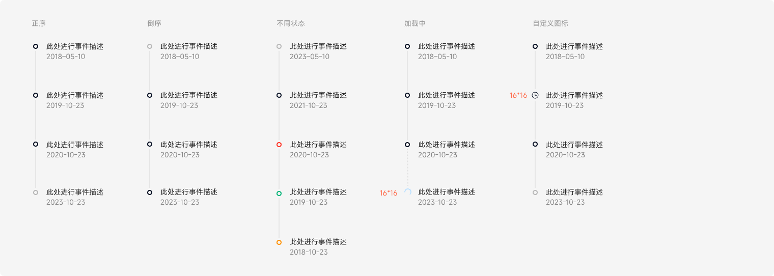 每个节点对应展示节点事件的发生时间,发生事件的补充描述。
