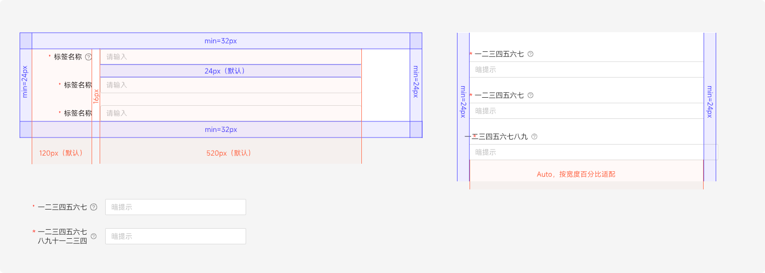 如表单中存在多个同类型的组件,建议长度尽量保持一致。至少保障所有同类型的组件宽度一致,宽度取其中最长的一个组件的宽度。