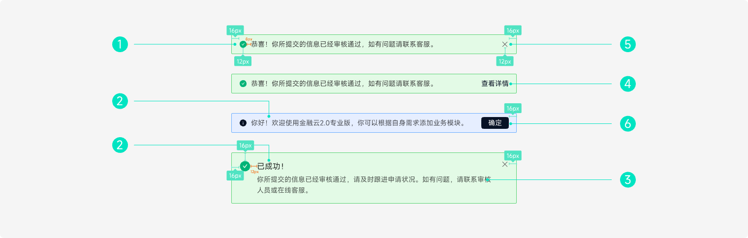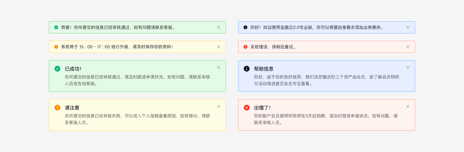 共有四种样式:常规、成功、警告、错误,可根据不同场景配置。